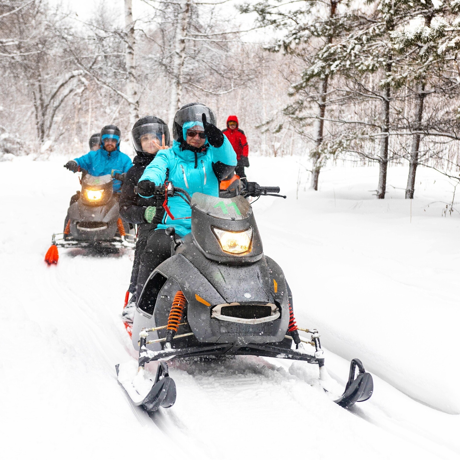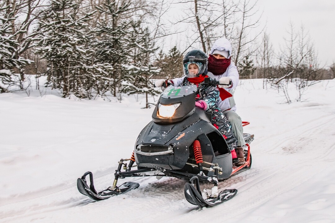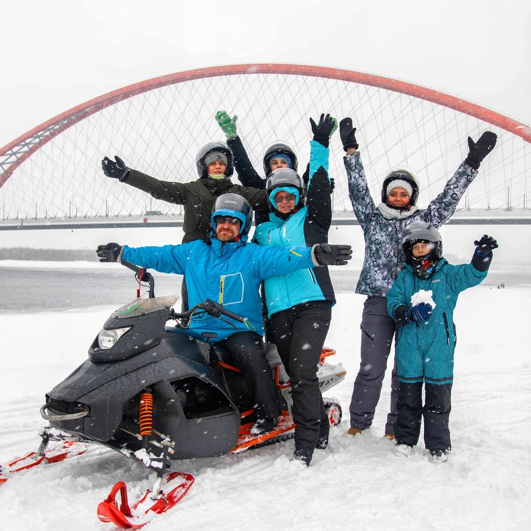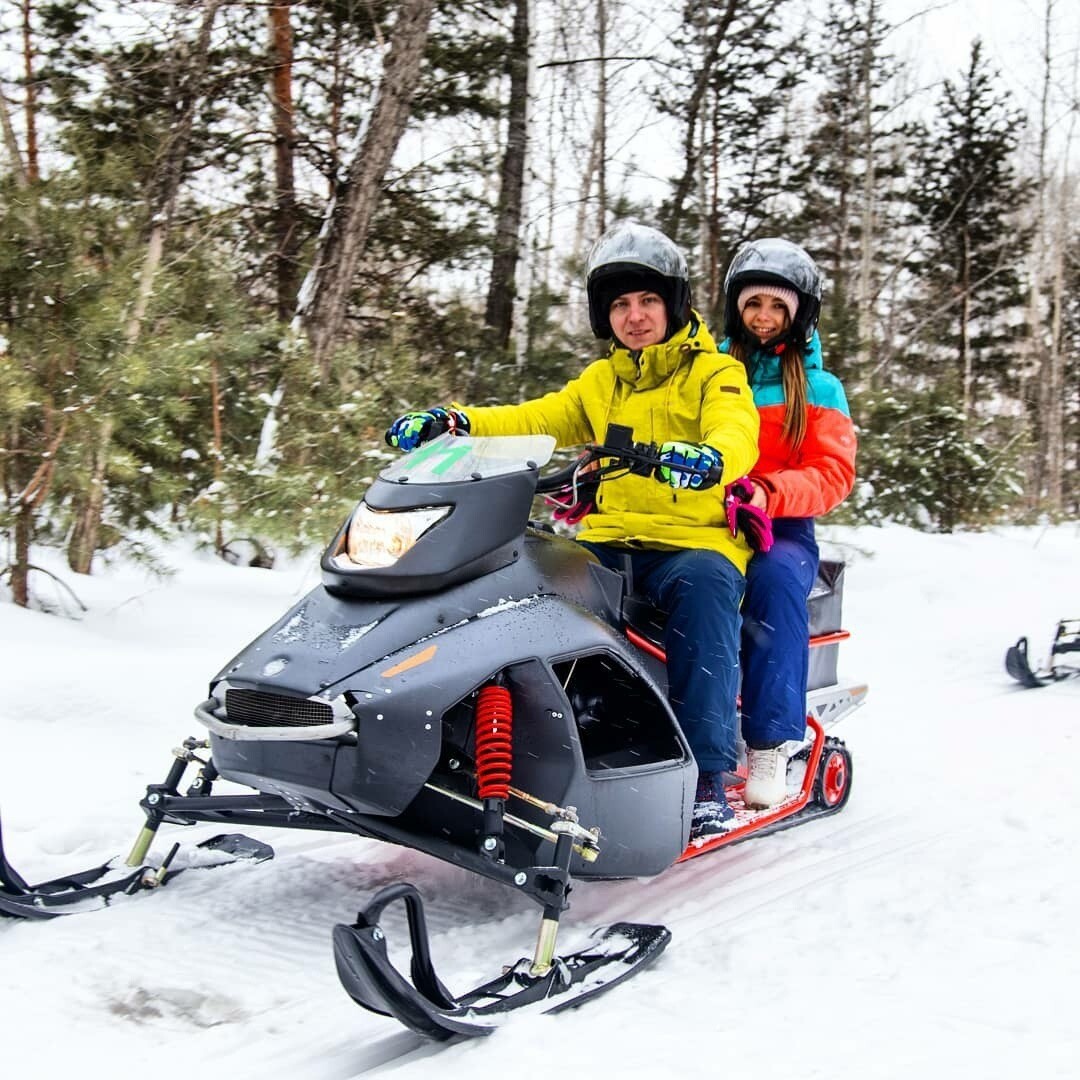 На снегоход могут сесть два человека, если общий вес не превысит 130кг. Доплата за второго человека 1000 руб.