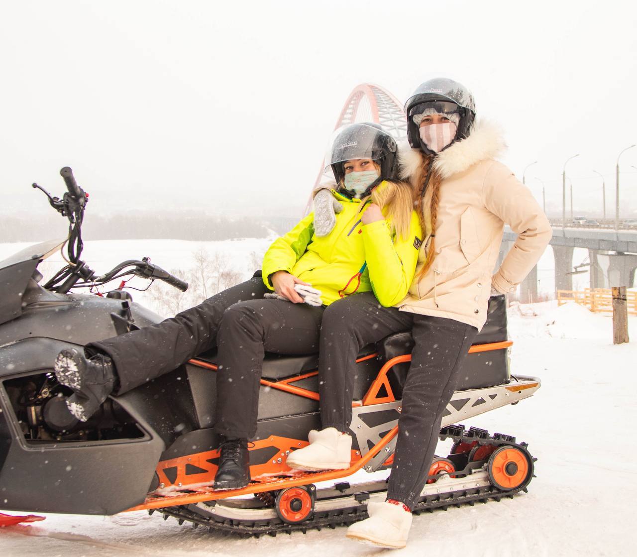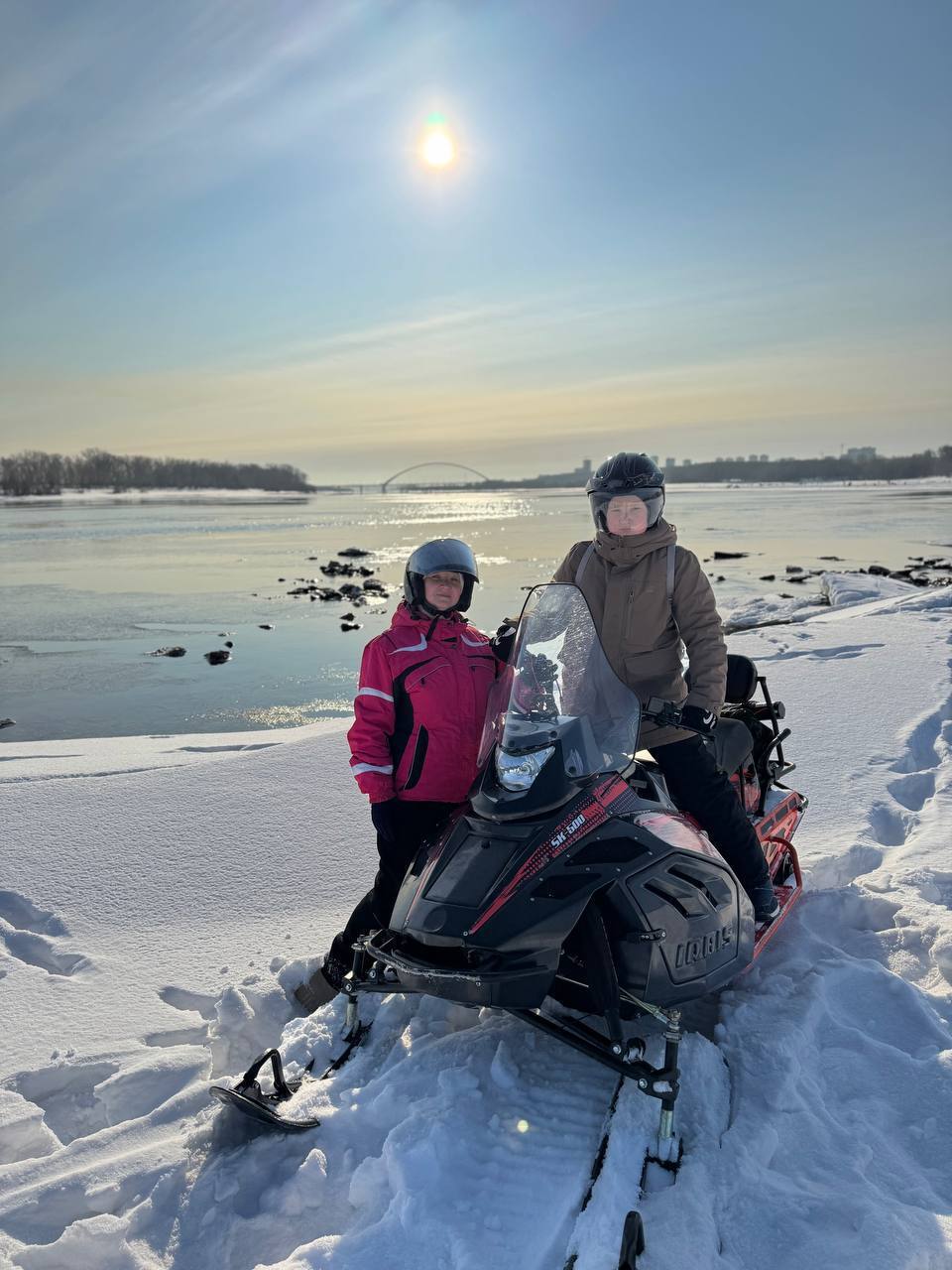 Прокат снегохода на 80 мин. по интересному Красному маршруту: по берегу, пересеченной местности, через лес, до Бугринского моста и обратно.